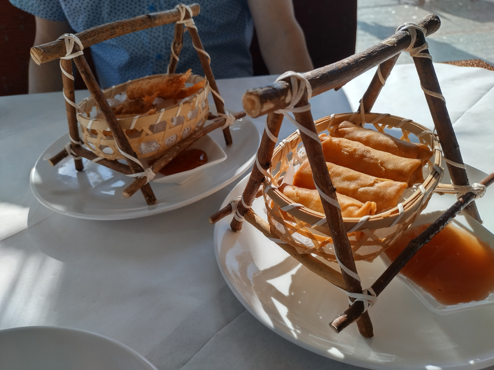 Kiinalainen ravintola. Alkupalaksi friteeratut jättikatkaravut ja sianlihalla sekä kiinankaalilla täytetyt dumplingit. Offerillassa on usein ollut tarjouksia ko. ravintolaan. Niillä on saanut annoksia ihan liian halvalla.