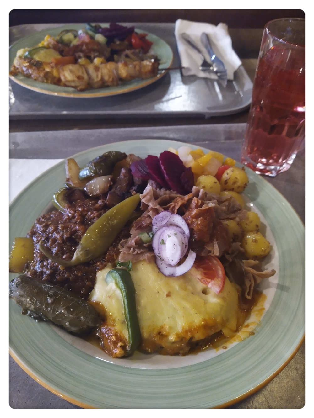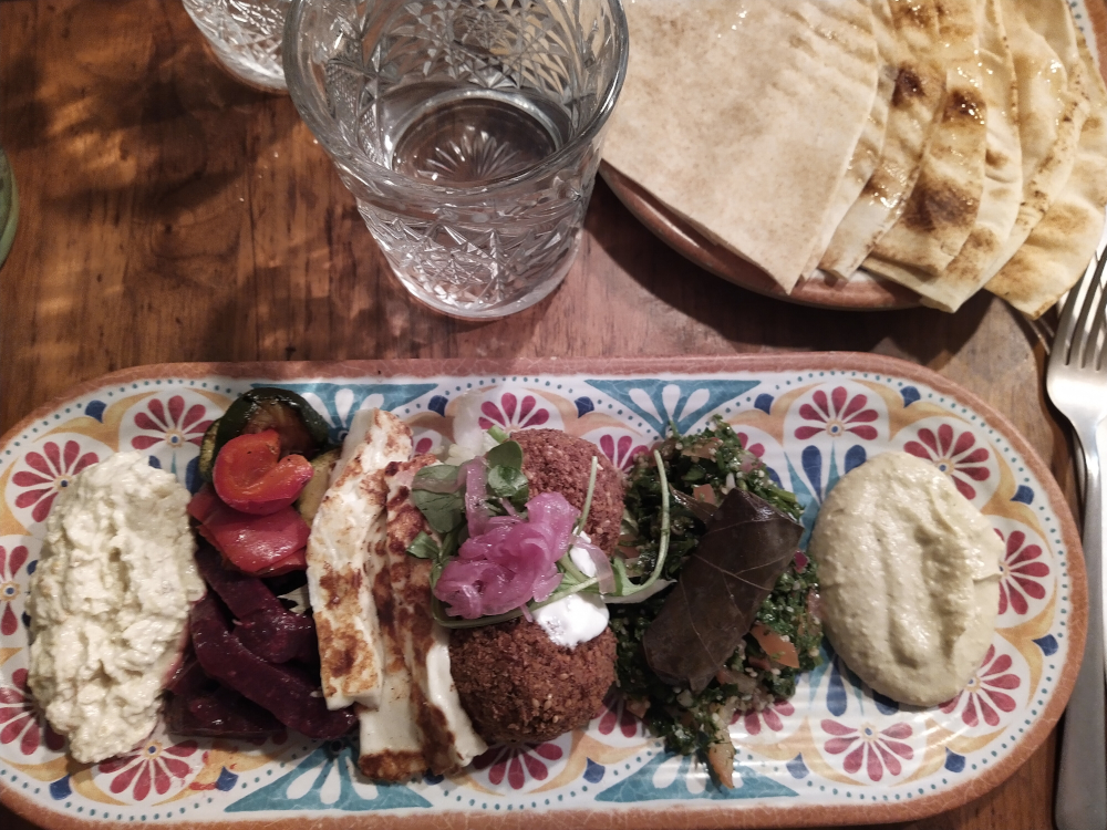 Pieni paikka. Mezessä ihania falafelejä, hummusta, tahinia, munakoisoa, korianteribulguria, matbuchaa, tzatzikia, papusalaattia ja pita-leipää. Kerran sateella Pate-koiran kanssa, ja se oli elämys kaikille. Hän ei osaa käyttäytyä, enkä minäkään ihan aina.